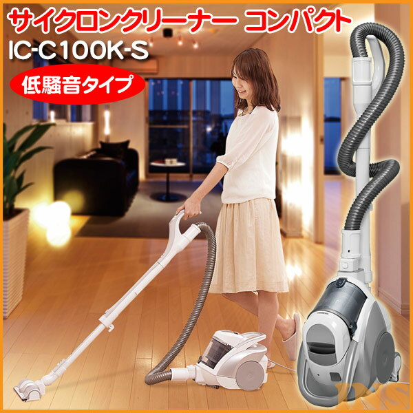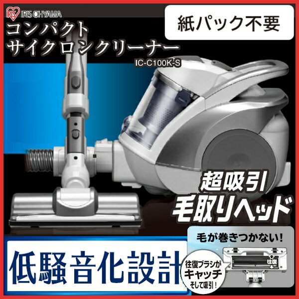 掃除機 サイクロンクリーナー IC-C100K-S送料無料 あす楽 サイクロン クリーナー コンパクト サイクロン掃除機 低騒音タイプ シルバー 収納 低騒音 静音 ノズル 大掃除 掃除 軽量 超吸引毛取りヘッド パワフル 掃除用品 生活家電 一人暮らし 新生活 アイリスオーヤマ